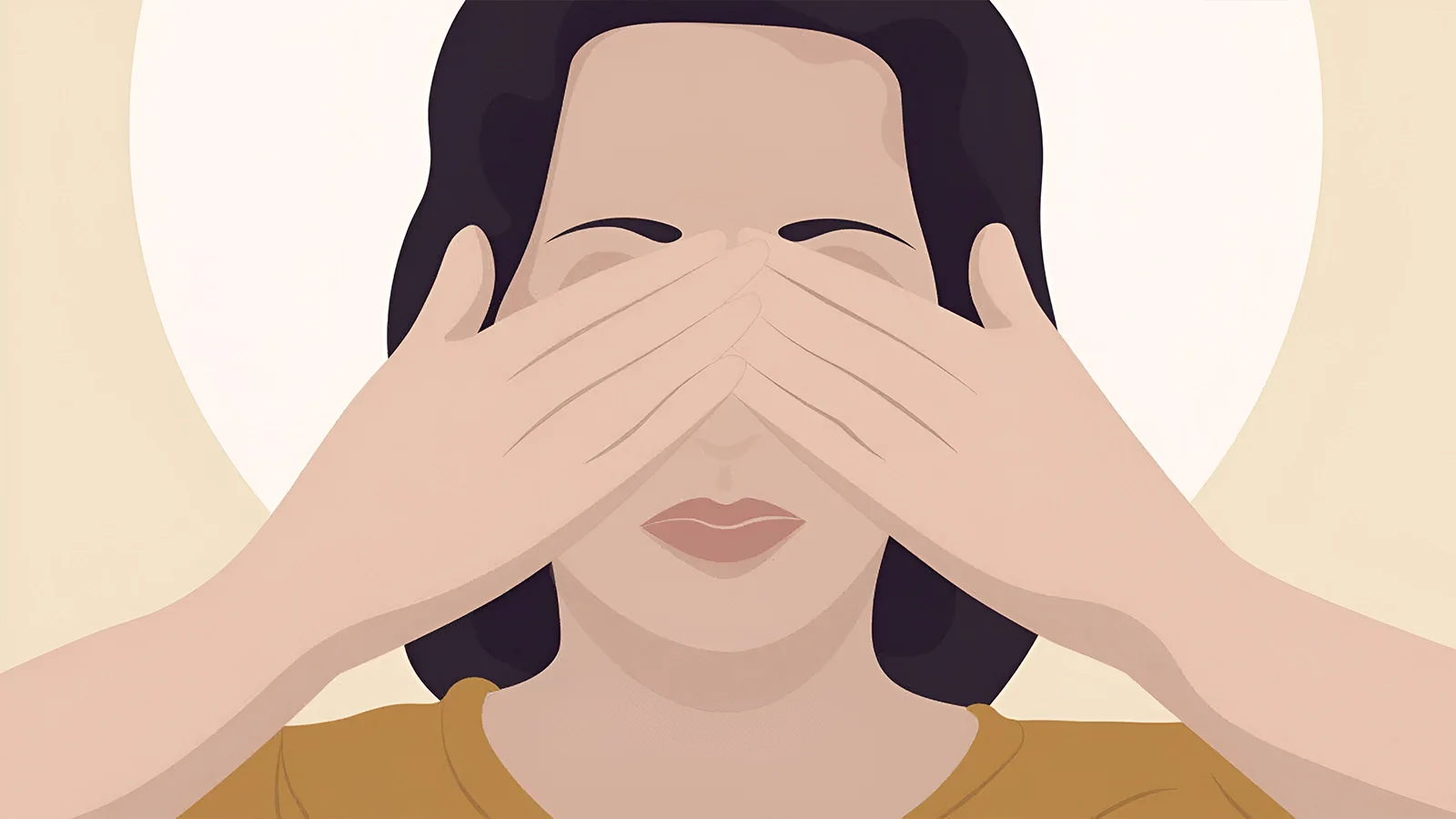 Gently put your palms over your closed eyes. Perform a few deep inhalations and exhalations to start relaxing.
